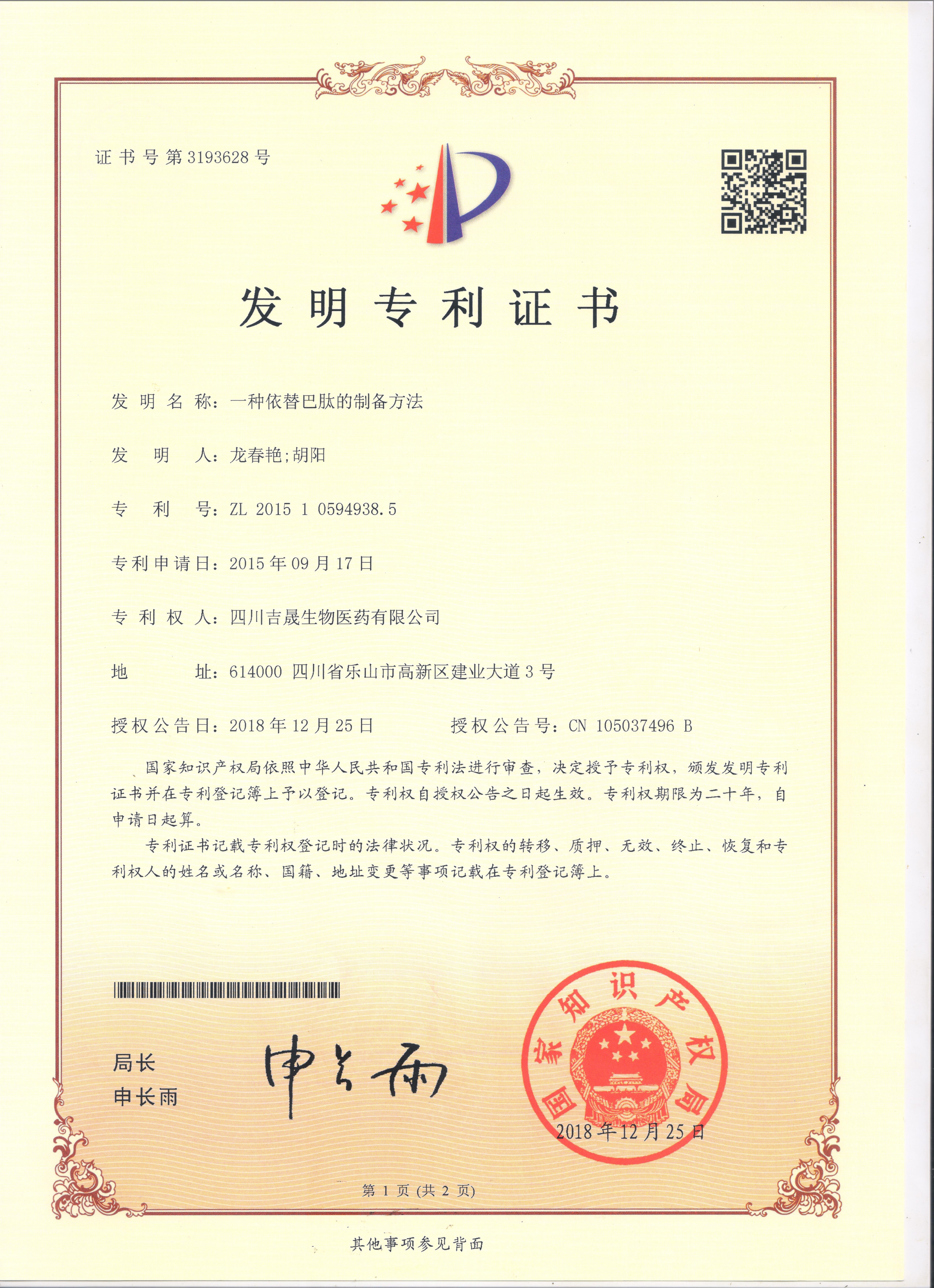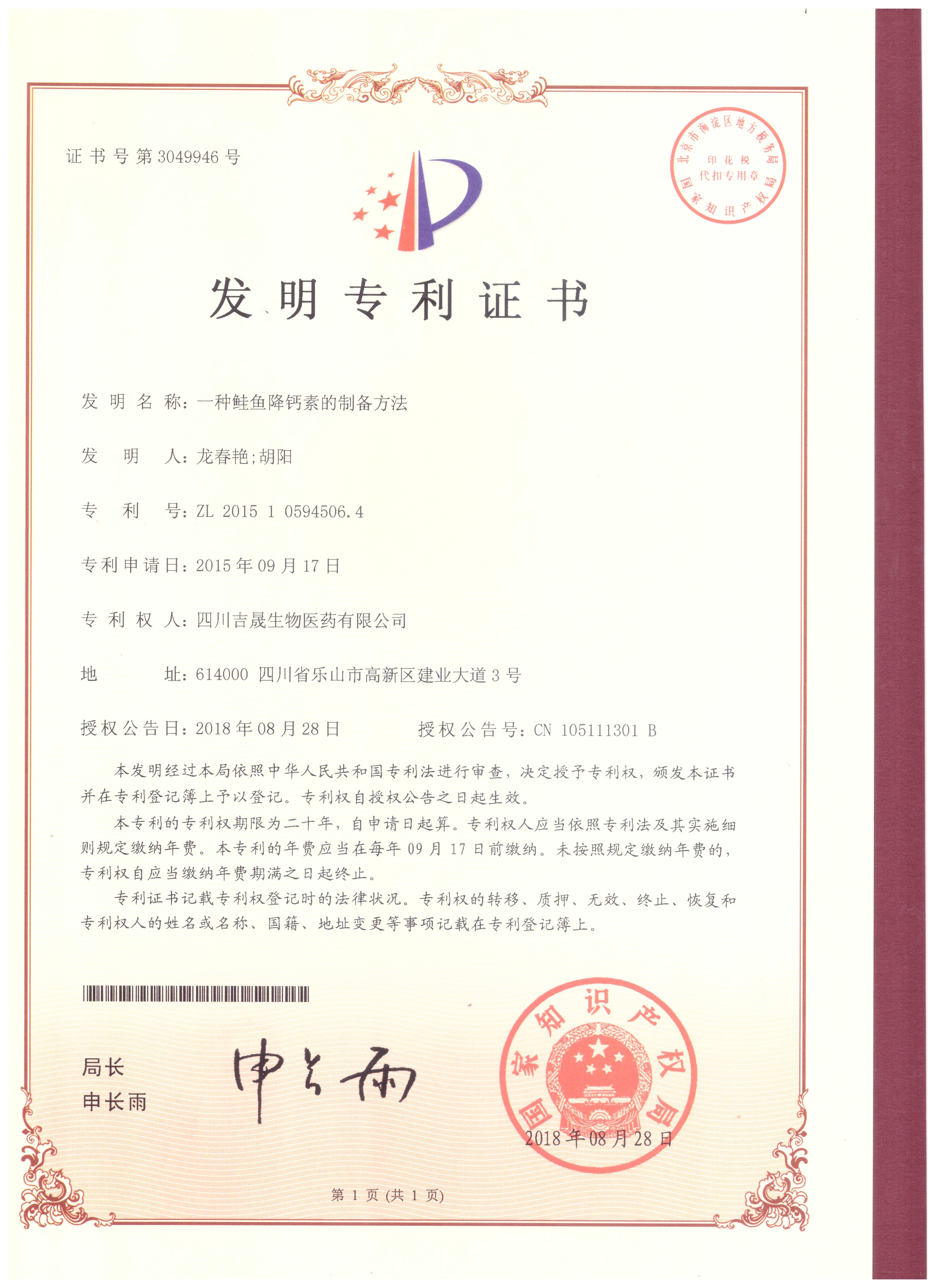 | 生物發(fā)酵專利 依替巴肽專利 鮭魚降鈣素專利 |