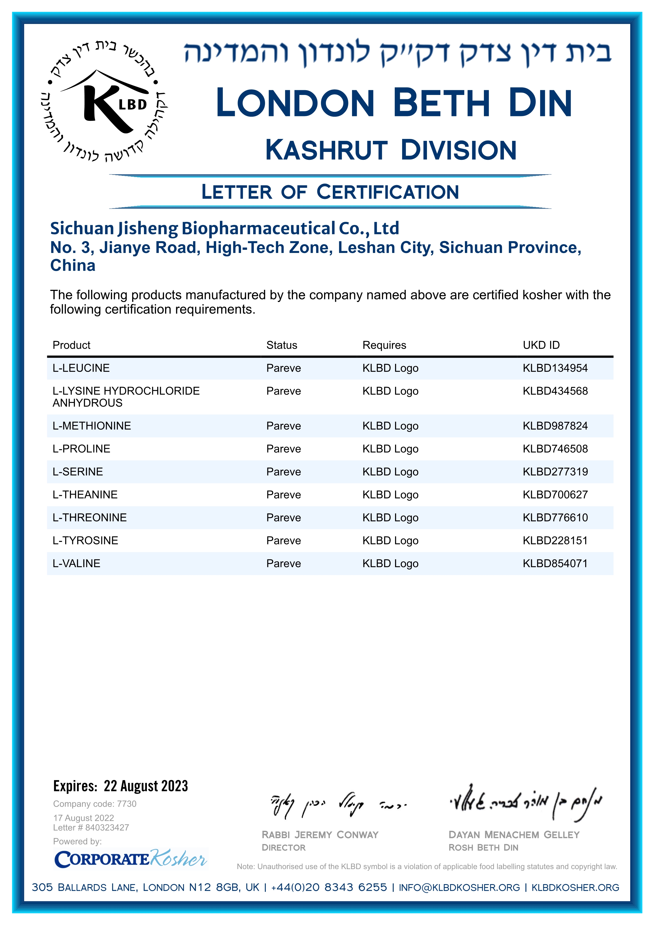 | ISO 9001 Kosher Kosher |